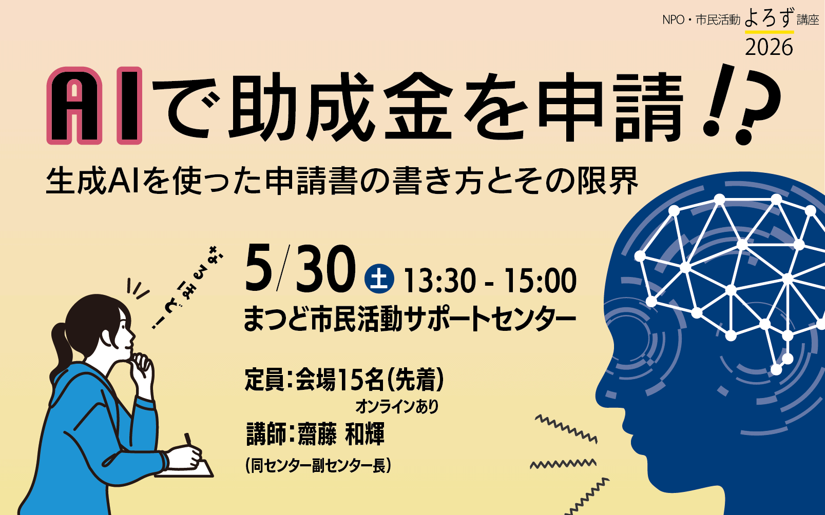 5/30(土)AIで助成金申請!?生成AIを使った申請書の書き方とその限界